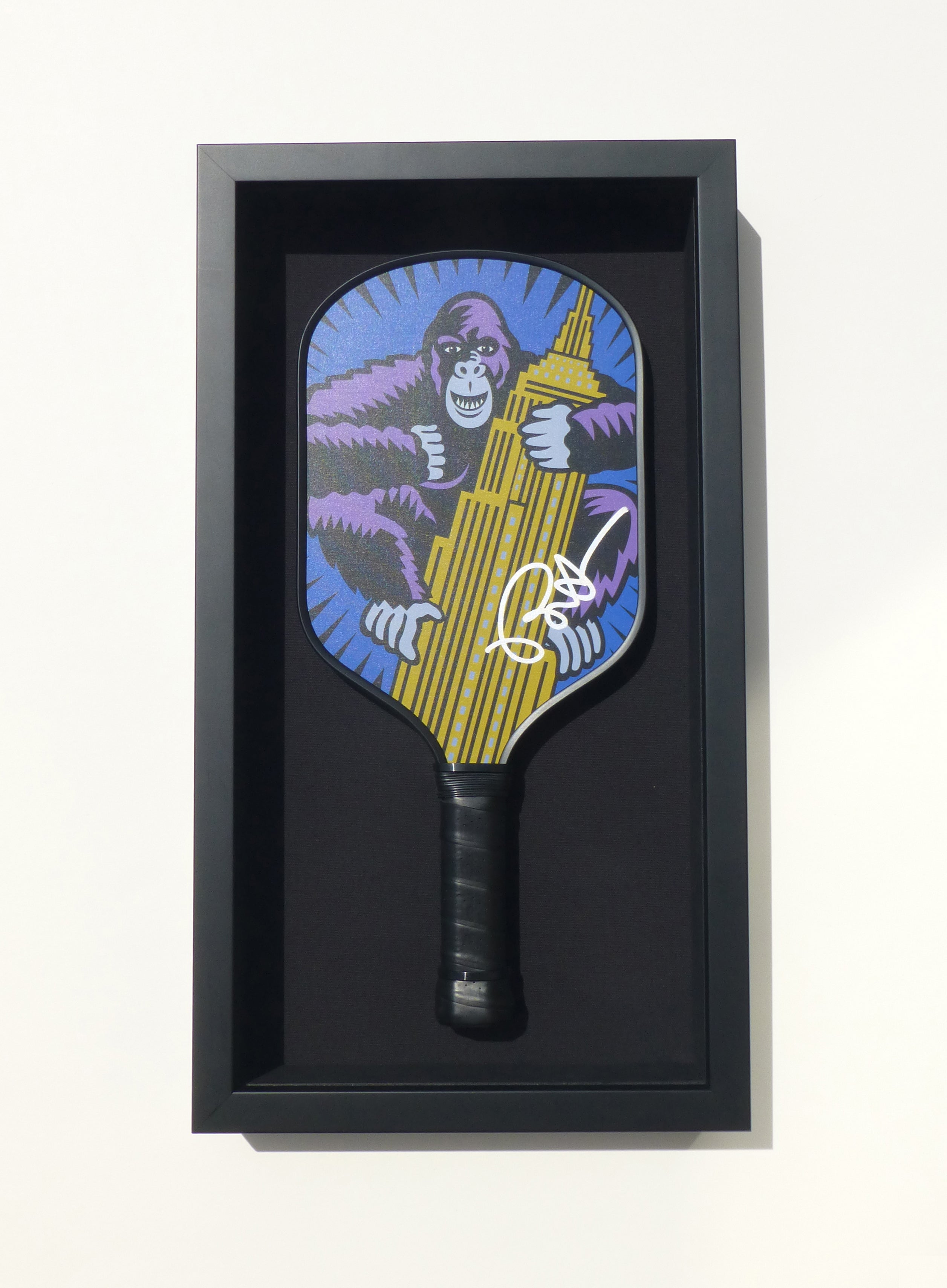 The paddle is available as a collectible work of art, framed and signed in silver marker from an edition of 100, or as playable paddle to dominate the court.